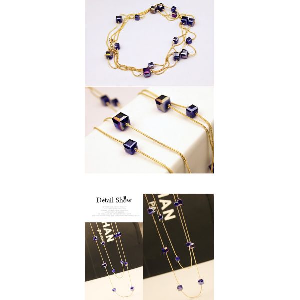 Contracted crystal necklace multilayer handmade beaded long crystal Images |