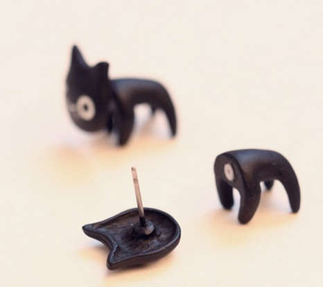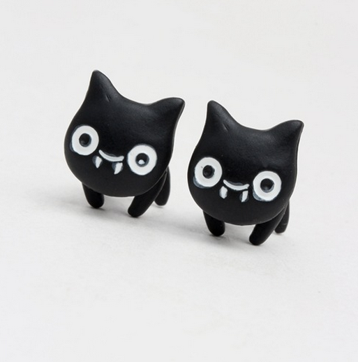 Korean version of the retro black Stereo Neckband sided cute little female cat earrings Images |