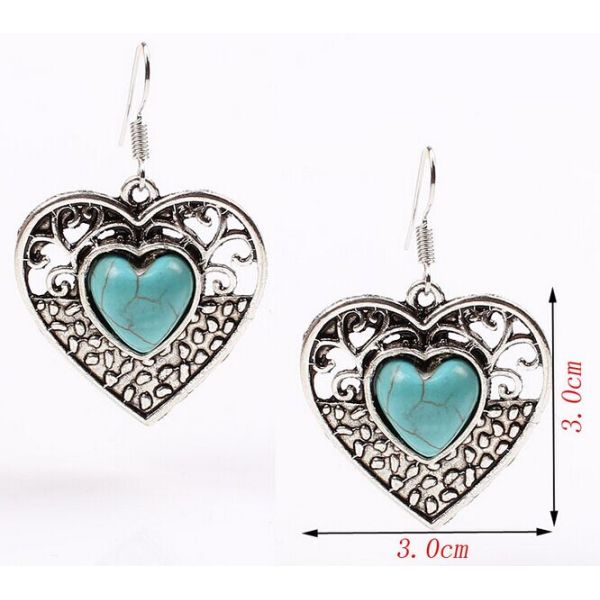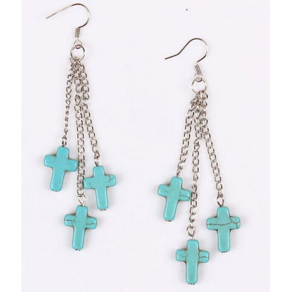 Cross love oval pattern of four ancient silver plated turquoise earrings Images |